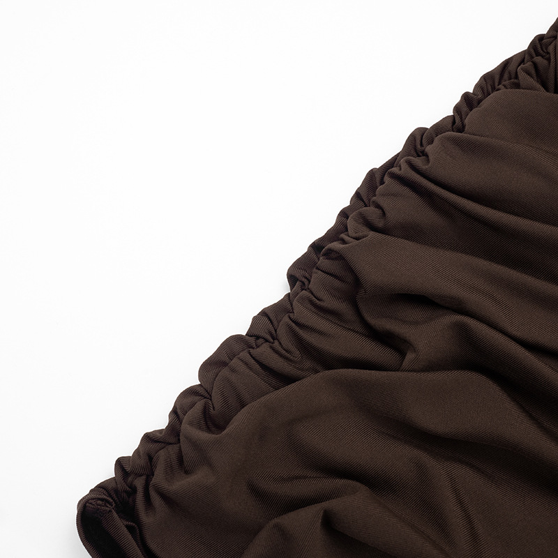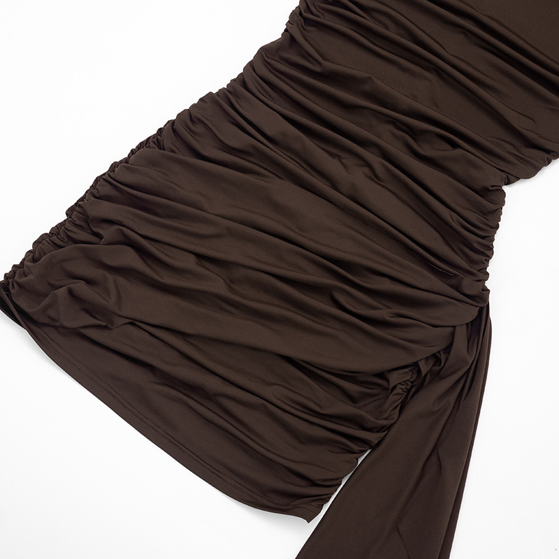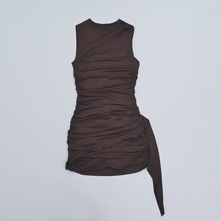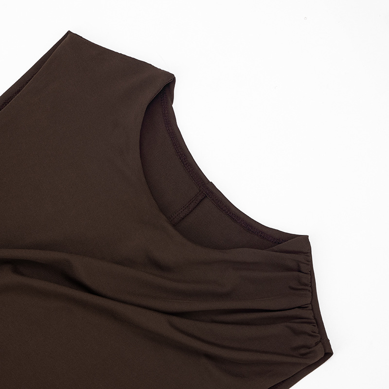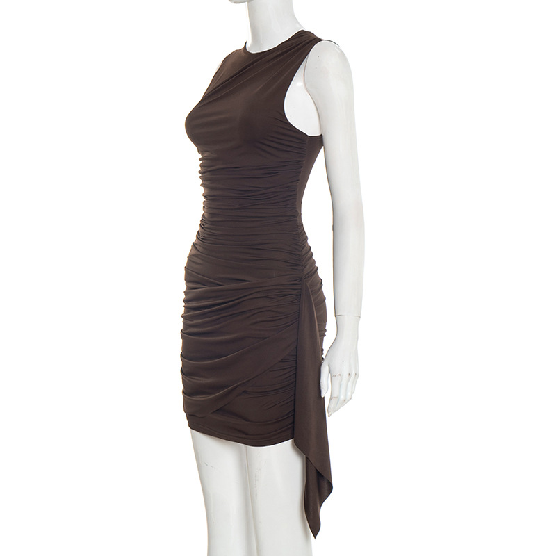 Women Clothing Spring Summer Simple Solid Color Asymmetric Sleeveless Pleated Ribbon Dress Women - S / Brown