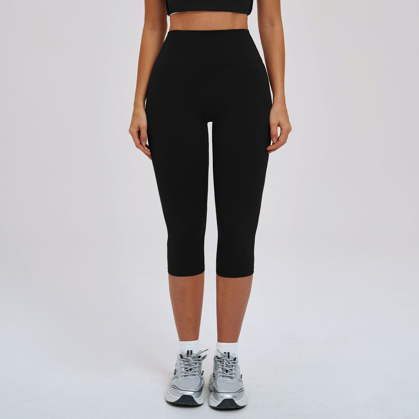 Brushed Yoga Knee Length Pants High Waist Tight Slimming Sports Pirate Shorts Running Outdoors Workout Clothes for Women - S / Advanced Black